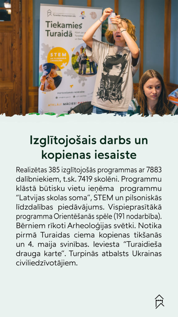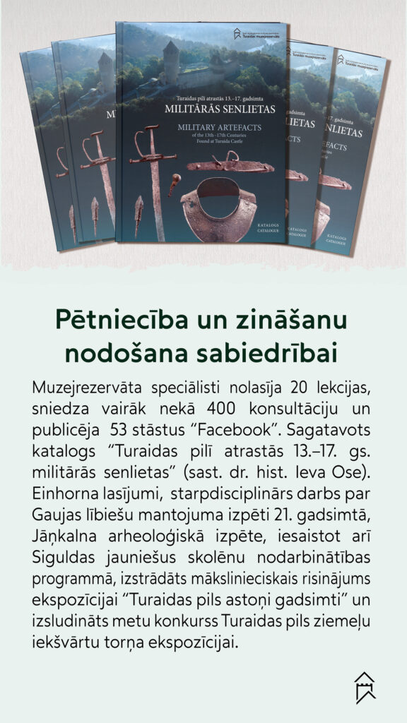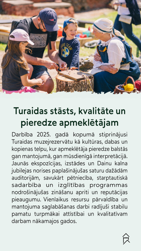 2025. gads Turaidas muzejrezervātam bijis dinamisks pārmaiņu un starptautiskas atpazīstamības gads. Esam apkopojuši notikumus, kas visprecīzāk raksturo muzejrezervāta darbu 2025. gadā, kas atspoguļo TMR darbību, attīstot pētniecību, veidojot starpdisciplinārus projektus un aktīvi piedaloties Eiropas kultūrtelpā. Tie ir fakti un notikumi, kas iezīmē ne tikai aizvadīto gadu, bet arī Turaidas muzejzrervāta turpmāko attīstību.