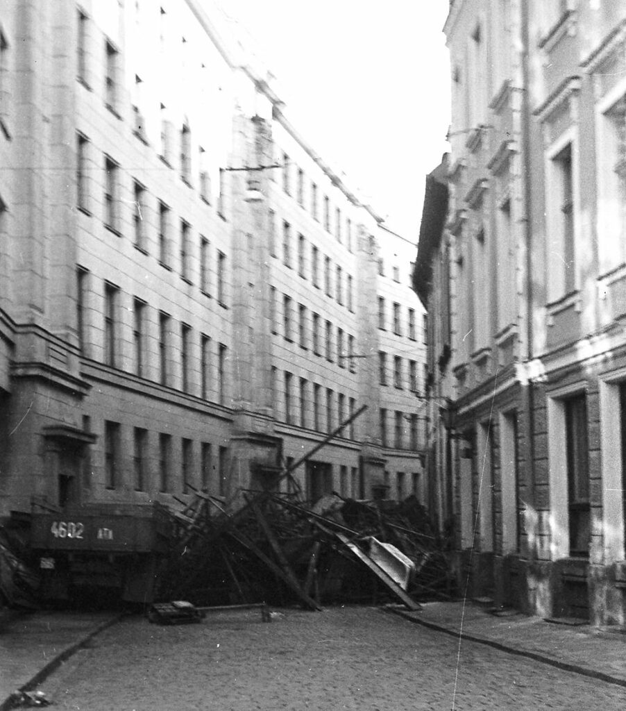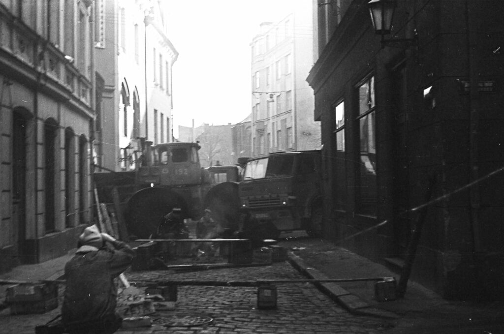 Devos pie maiņas virsnieka – pārliecinājos, ka viņi tikai nomaina postenī esošos un nevienu neapdraudēs. Tad pavadījām sardzes maiņu pa eju, kuru izbrīvēja barikādē. Virsnieks izbrīnīts krievu valodā jautāja: “Puiši, jums tas uz ilgu?”. “Tas atkarīgs no jums!”, atbildēju.